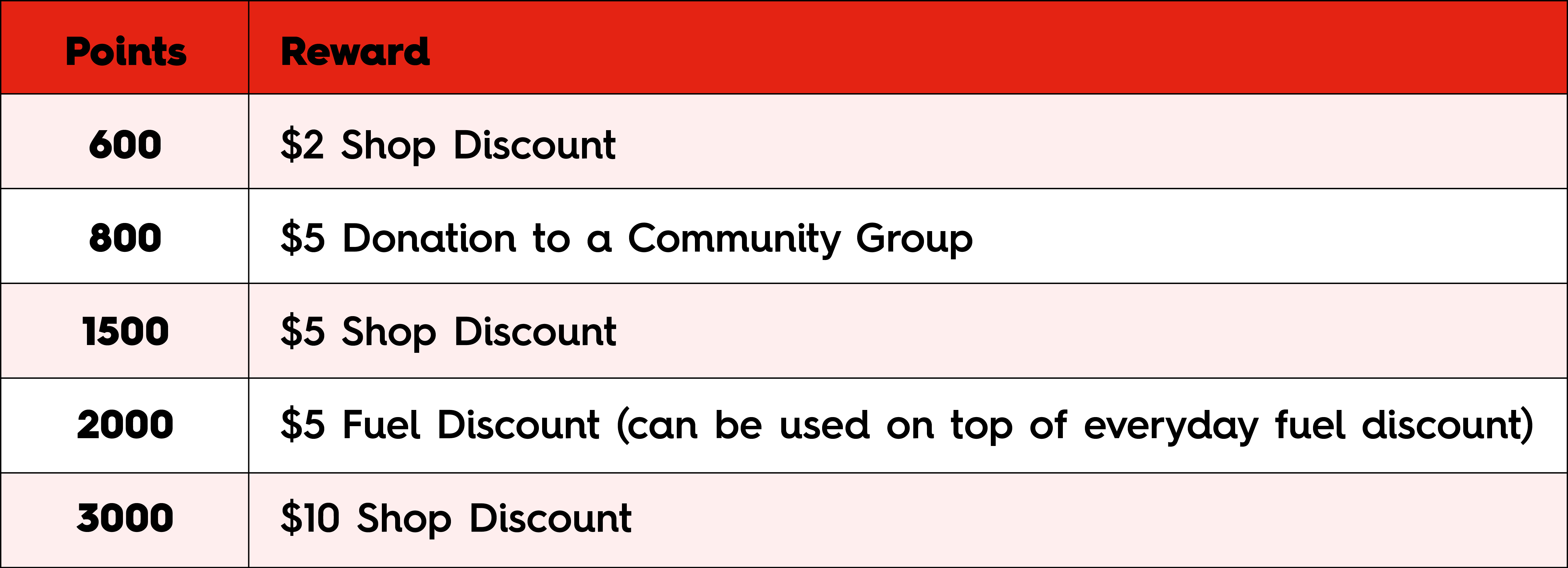*Excludes fuel purchases which will continue earning 1 Point for every $1 spent, and excludes purchases of cigarettes, vape products, lotto or scratchies.